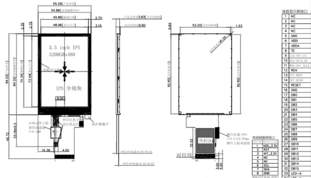 3.5-అంగుళాల ఐపిఎస్ టిఎఫ్‌టి ఎల్‌సిడి టచ్ స్క్రీన్
