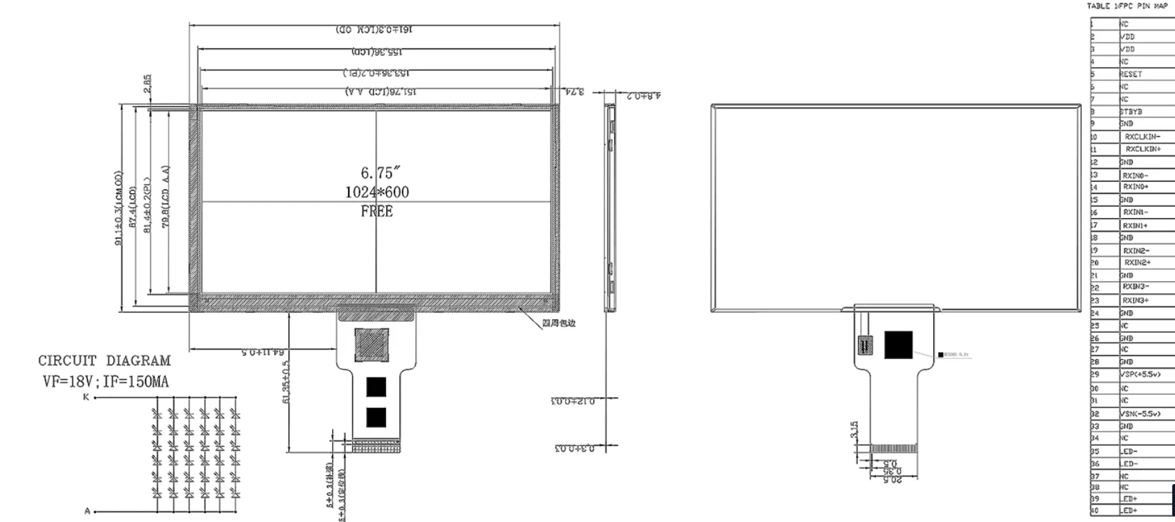 6.75 అంగుళాల టిఎఫ్‌టి ఎల్‌సిడి మాడ్యూల్